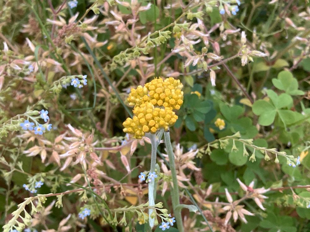 黄色い小さな花が、身を寄せ合って咲いていました😊