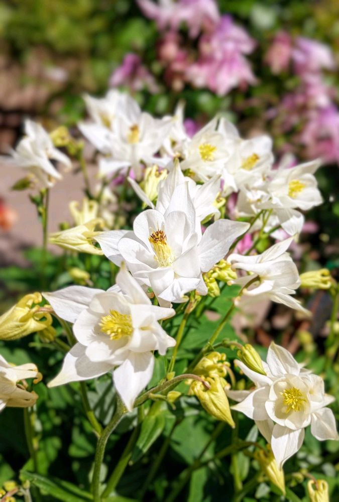 2️⃣🍀花友さん宅から株分けしてもらった オダマキ(白)も満開に🥰