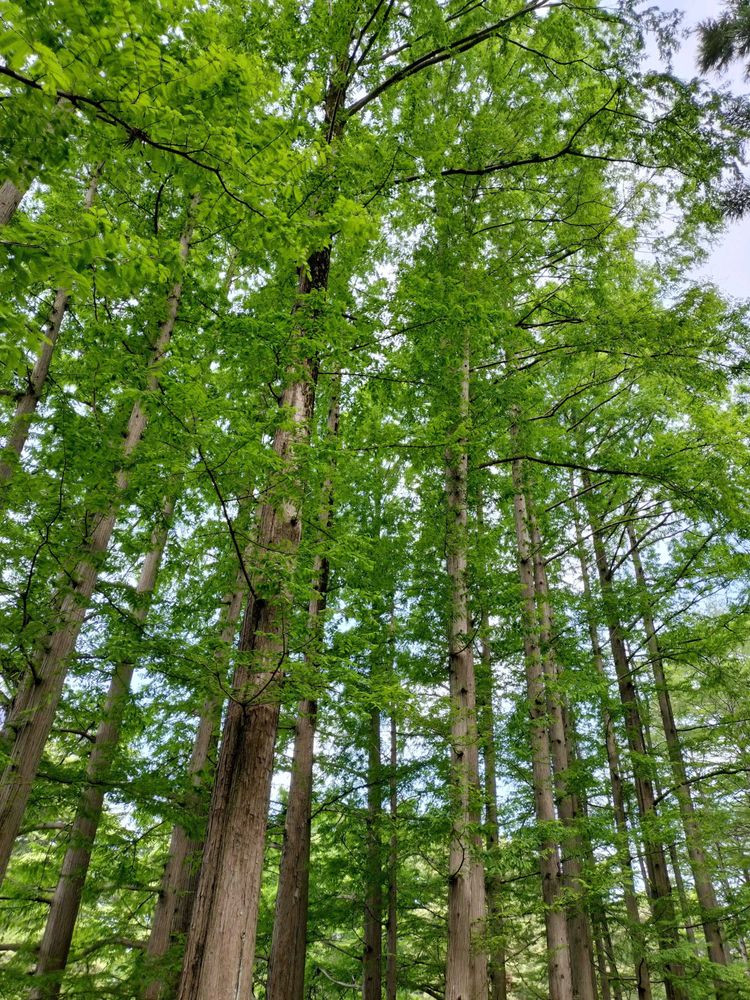 メタセコイアの新緑、爽やか〜、最高💚💚💚🌲