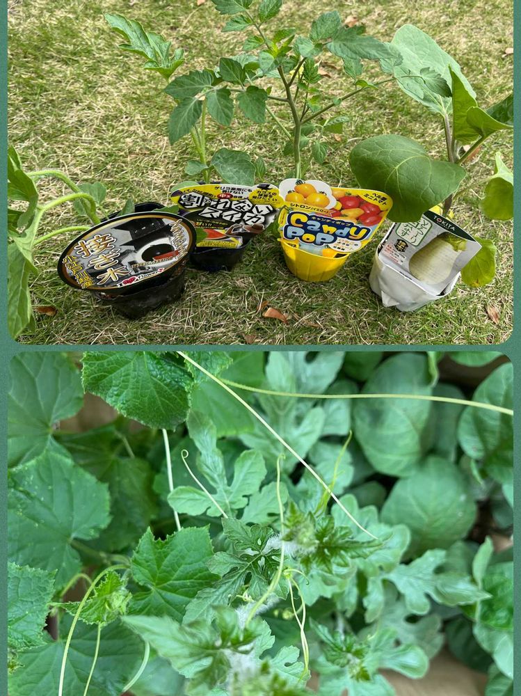 カボチャ🎃去年の種蒔いたら芽が🌱出て来た😆だけど、ゴーヤはまだ出て来てない😢ちっちゃな畑にこんなに植えてって思っちゃうよ、だから出来はあまりよくないかも😂因みに,野菜は夫担当です🤣