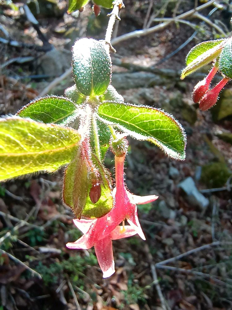 ウグイスカグラ〜可愛いラッパ🎺の花で好きなんだけど、ウグイスカグラもミヤマウグイスカグラって言うのがあるんだね〜それも毛で区別するのが面白い🤭✨