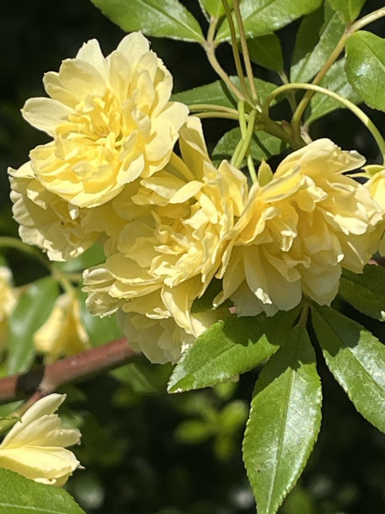 ①黄色いモッコウバラ、去年小さいモッコウバラを購入…今年は大きく伸びました.。.:*🌼