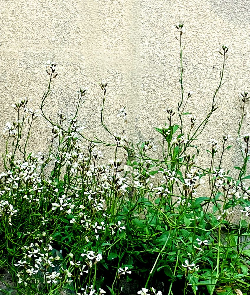 ルッコラの花,散歩道で出会ったお花,通り道のお宅のお勝手口にの投稿画像