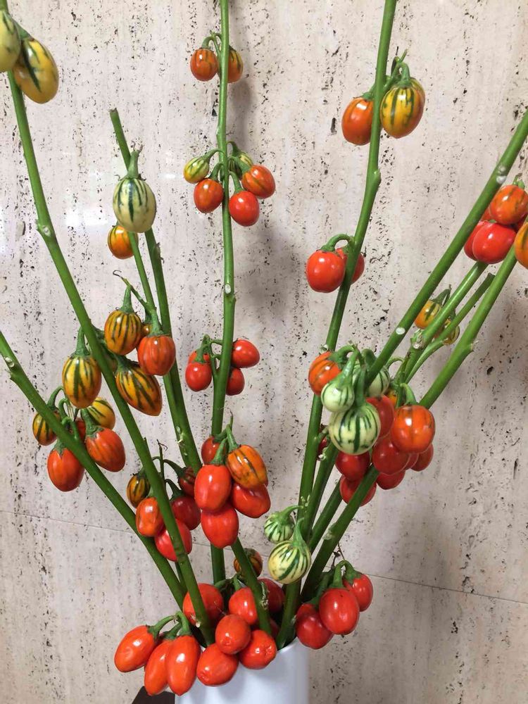 さん、そうですね、去年はまるでミニトマトみたいでしたけど、今年はやや楕円形でスジの入ったものもあってトウガラシに近いかも