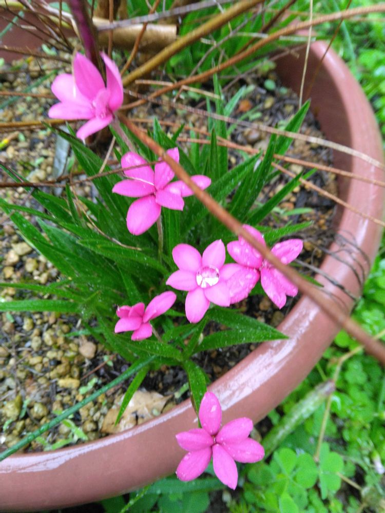 お早うございます。今日は、朝から雨です。他の花の中に隠れて咲いてました。