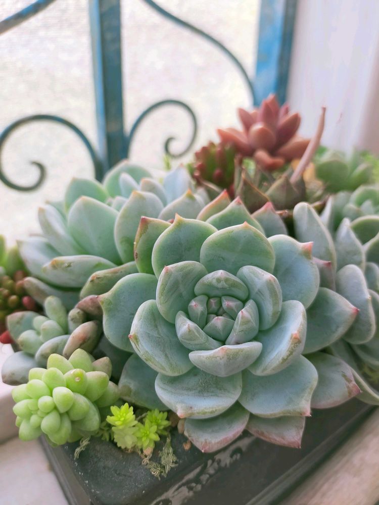 寄せ植えのこの子、バキバキ具合も爽やかなお色もとても良いです。