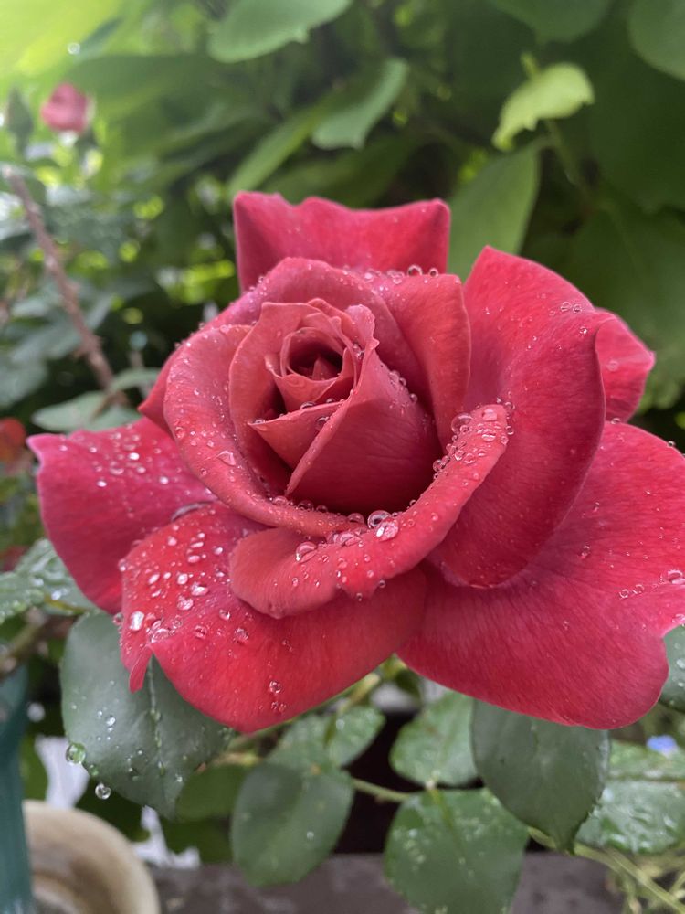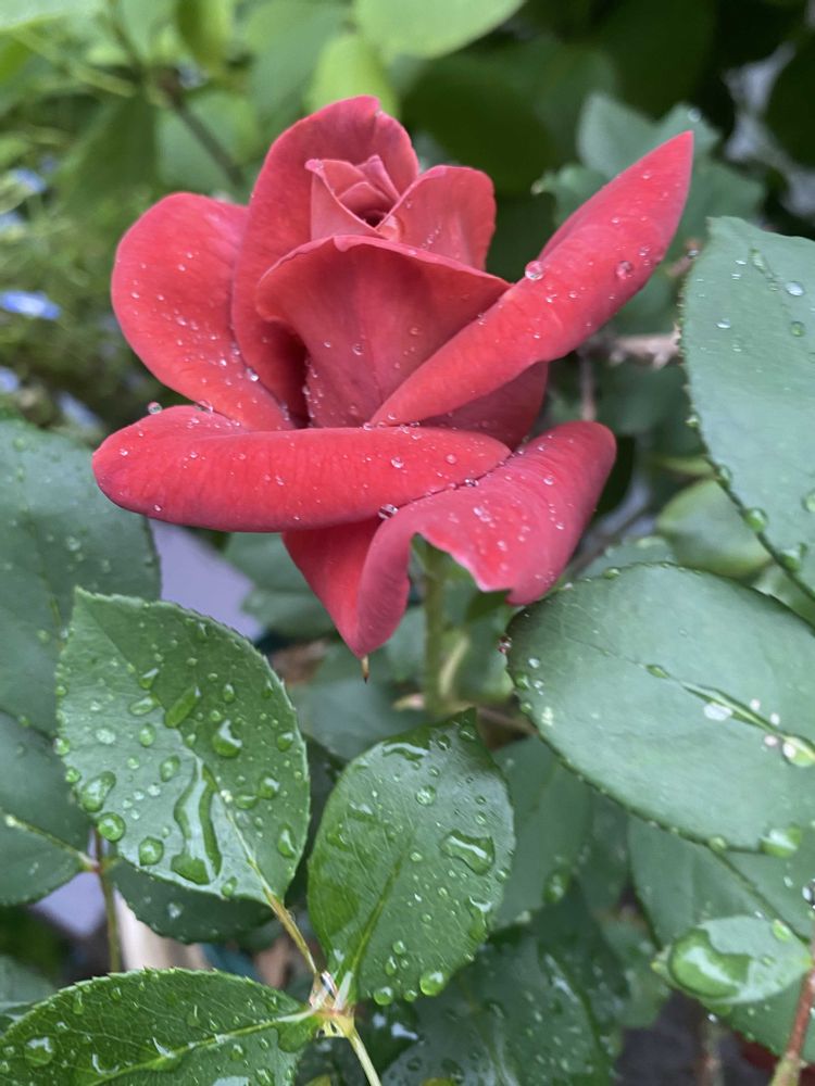 レッドキャプテン さんが雨粒を受けてしっとりと美しく咲きました❤️
