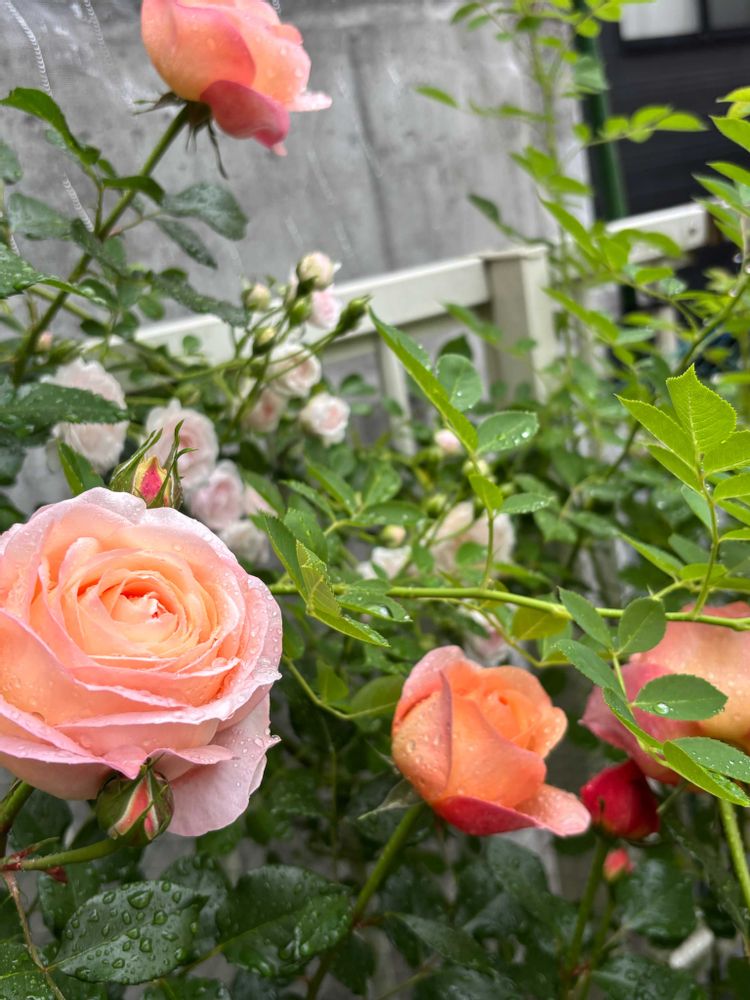 雨すごいですよね💦満開待ちのバラたちがちょっと残念だけど自然には逆らえませんね😭