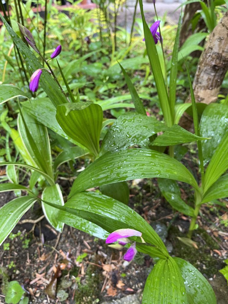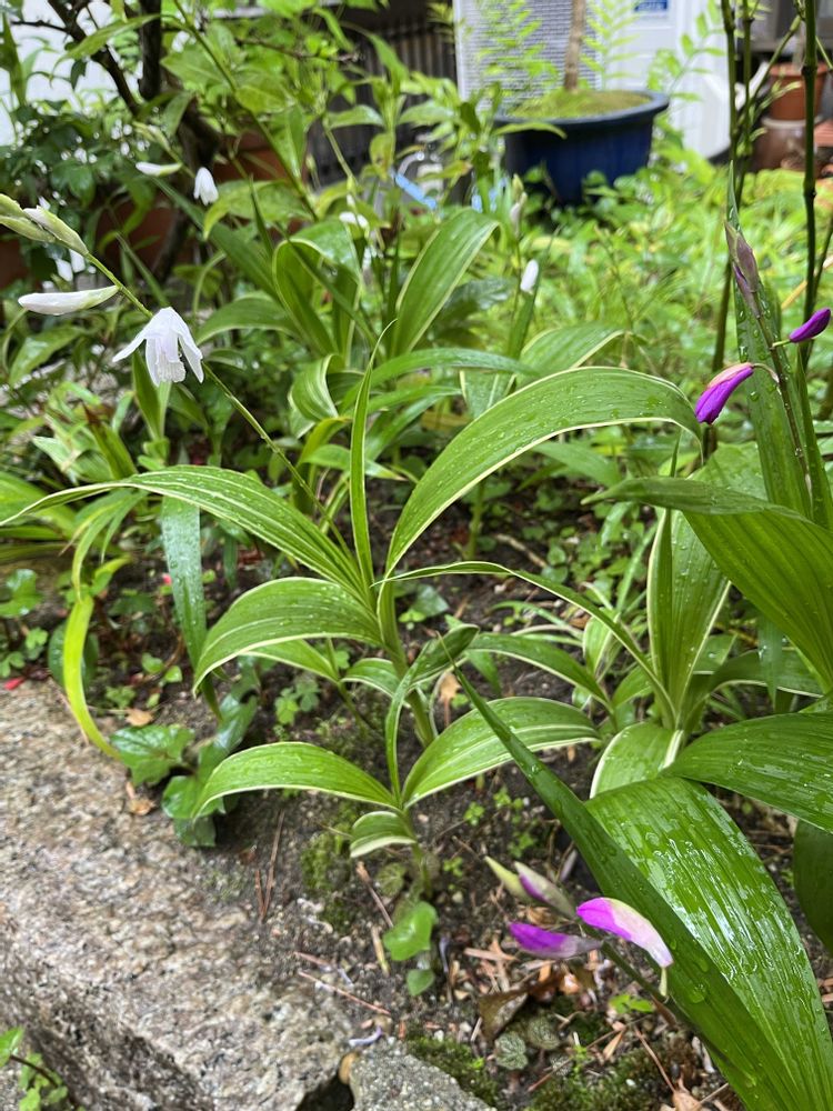 紫🟣シランの中に2つだけ白いシランを見つけました👍