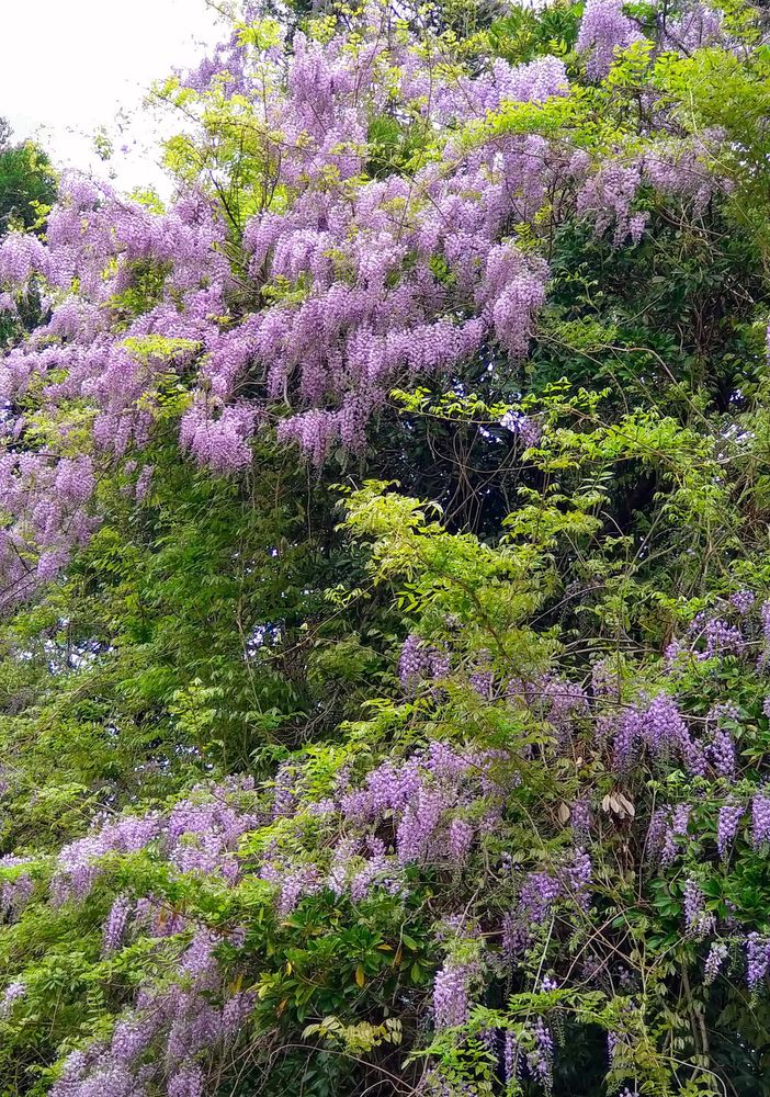 ⑤ 川沿いの木に絡んで咲くヤマフジ✨💜✨