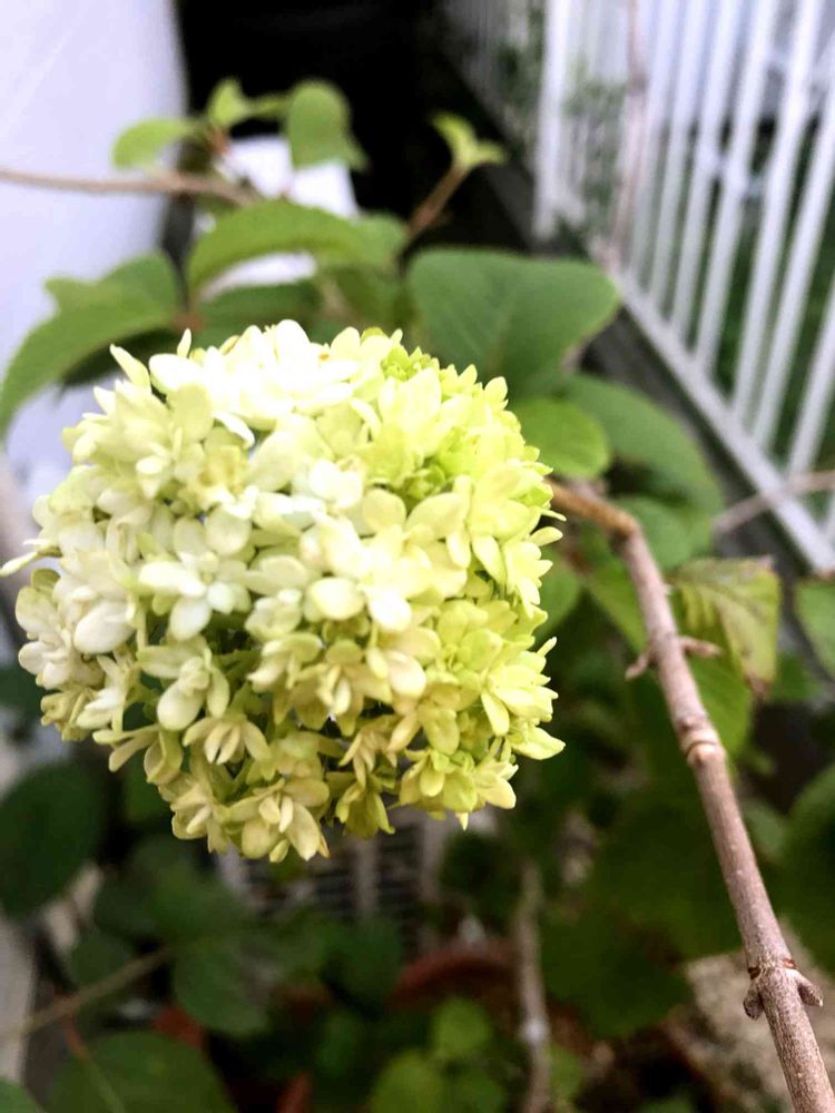 夕方花に水やりしていたら、ふとオオデマリ見たら 花咲いてました。開花する時期じゃないのにと おどろきました。