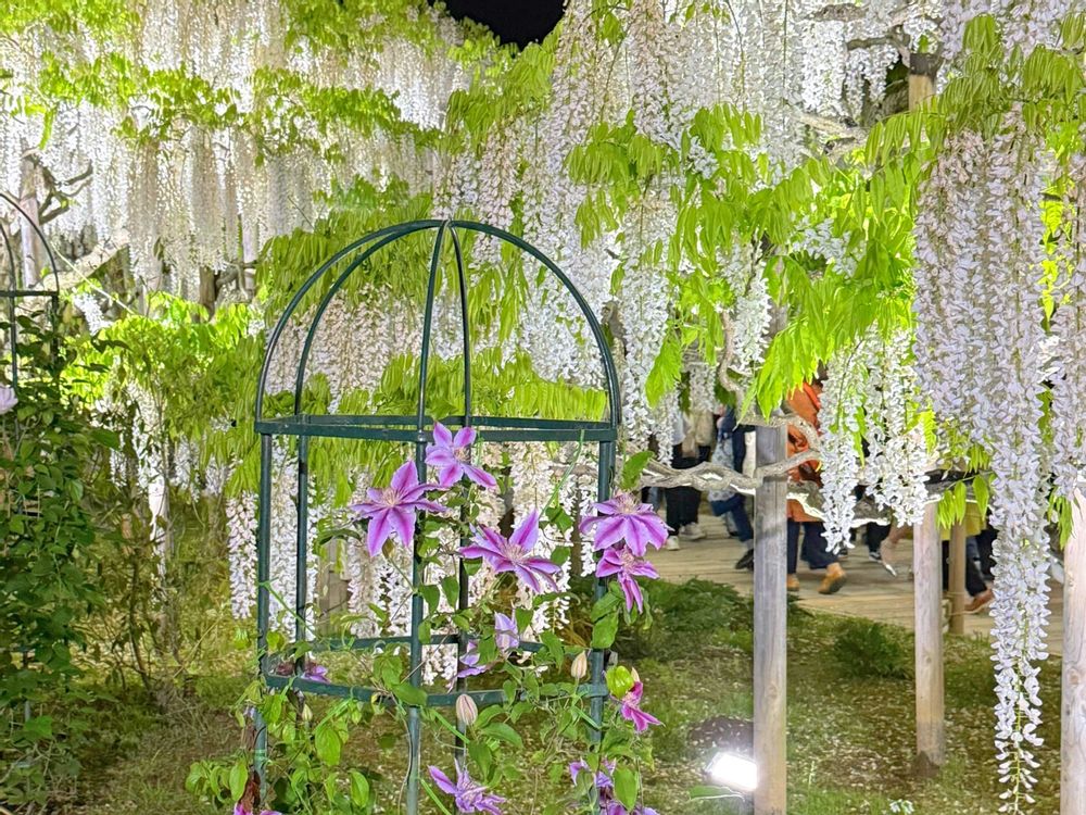 藤の花ももう終わりの頃は、昼間見てもイマイチなので、夜のライトアップが良いかと🌸