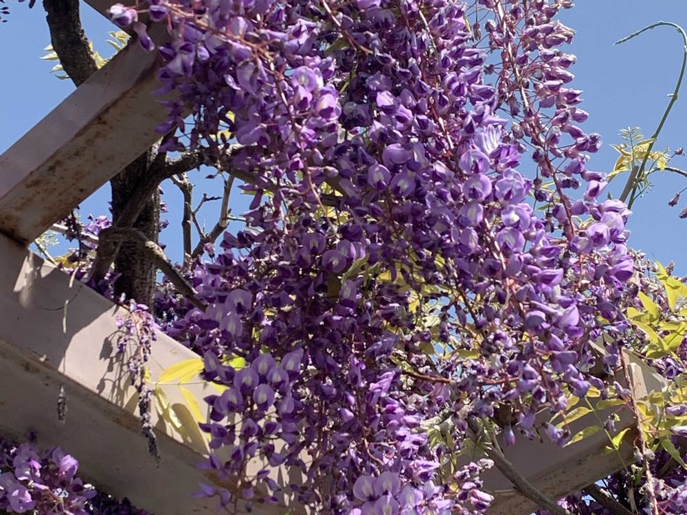 藤の花が春の風に揺れていました
