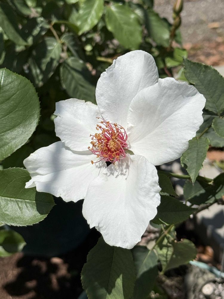 花芯の赤い蕊がポイントとなる白色の一重咲き