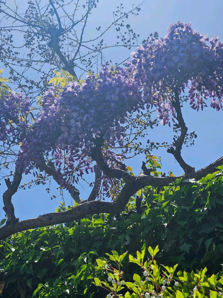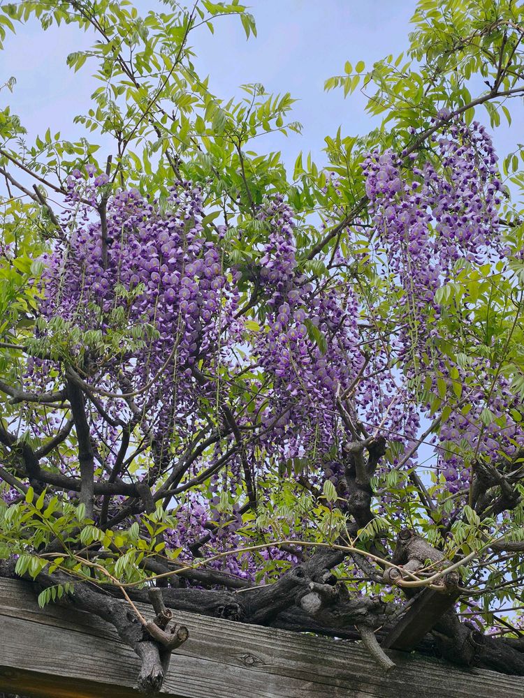 おはようございます☂️雨が降ると庭の花もくたーっとなってしまいます😥藤の花も青空が似合いますね😊