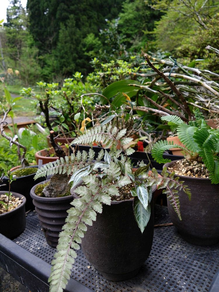 朝、いい感じの小糠雨で、山野草に雨を当てようと外に出しましたが止んでしまいました。