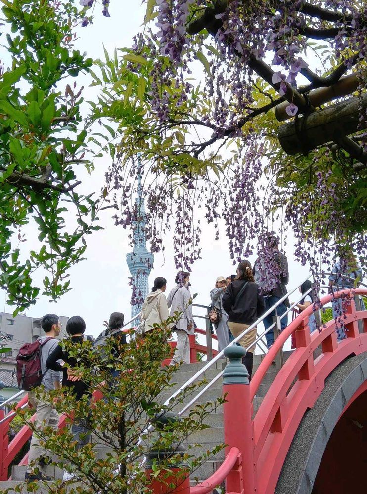 太鼓橋もスカイツリーも絵になります。同時に写すのは、なかなかです。