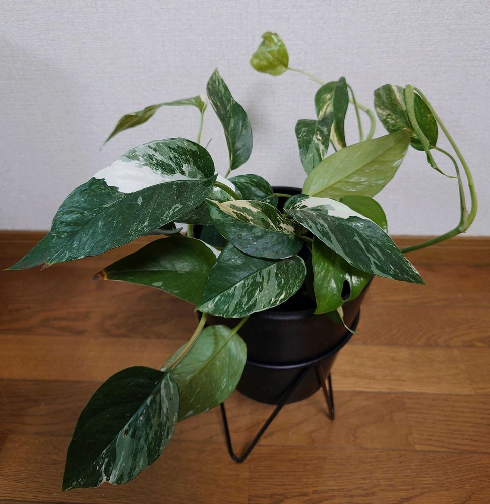 (エピプレムナム ピナツム バリエガータ?)葉っぱにちょっと穴が空いています。大きくなると切れ込みが入るのかな〜。