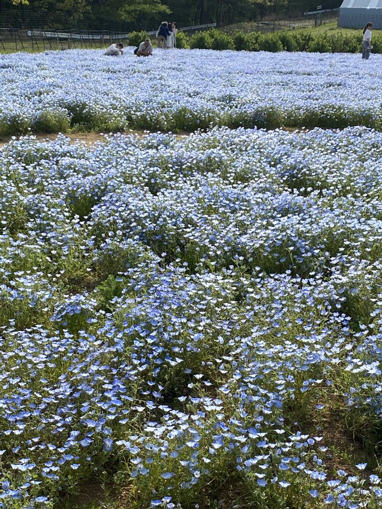 昨日はよく晴れていたので、実家の母を迎えに行き、こちらに連れてくる途中、メナード青山のネモフィラ畑に寄り道してきました😊