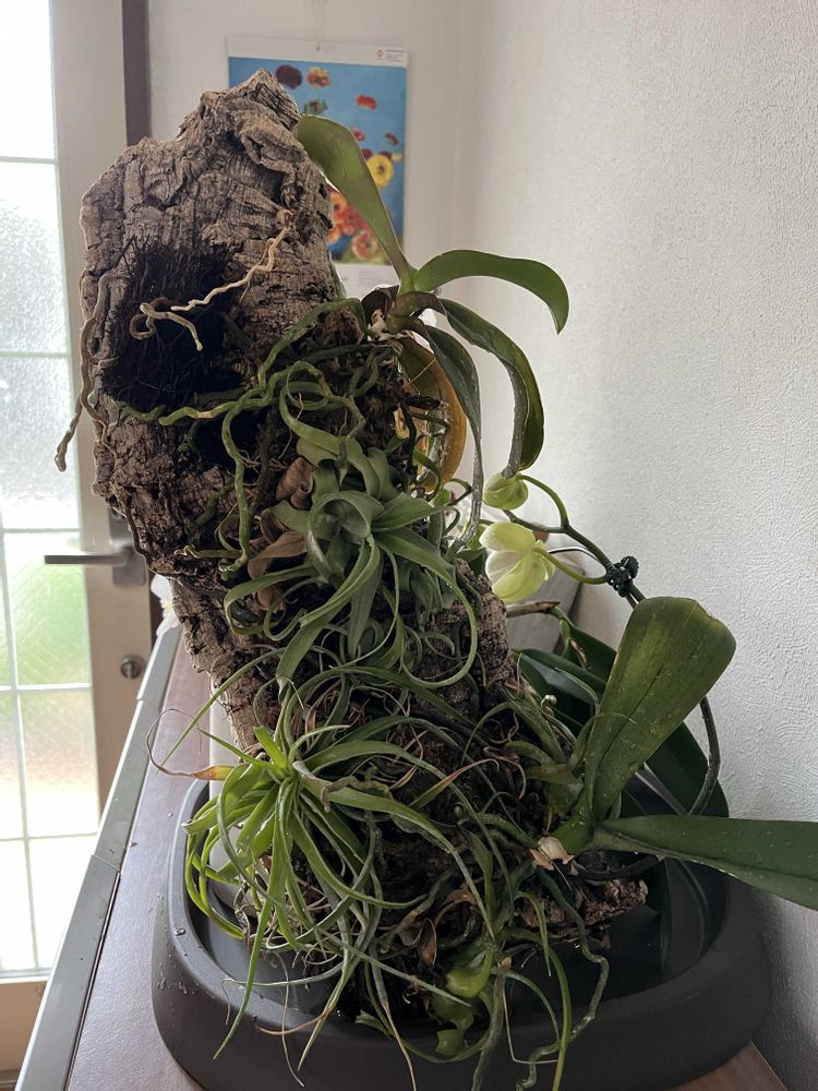 胡蝶蘭の根がコルクに巻き付いてカッコいい😍