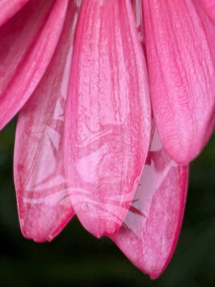 ボンザマーガレットの花びらに、雨粒による模様が映り込み、面白い と思ってパチリ📱
