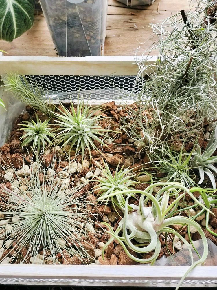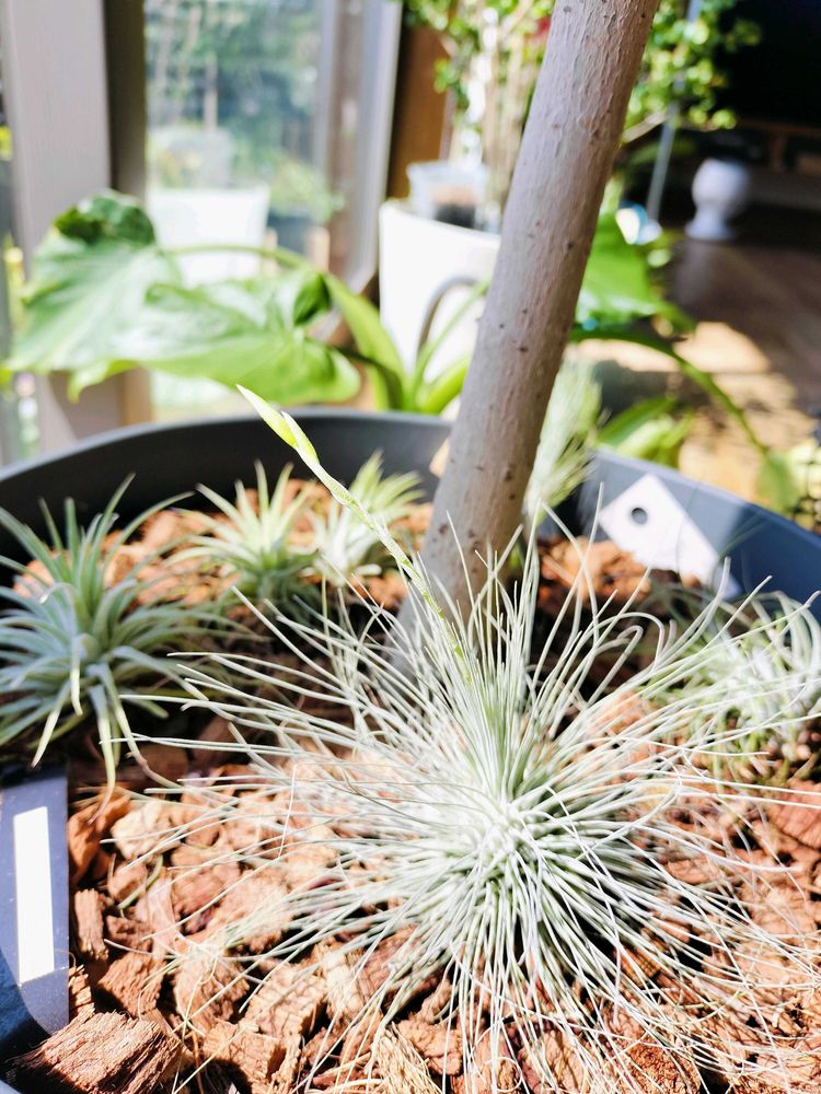 ウンベラータの株元でご機嫌にして根っこノビノビしてたエアプランツ達、ウンベちゃんお外へ行ったのでエアプランツ専用コーナー作ったけど、どうやろか🤔?