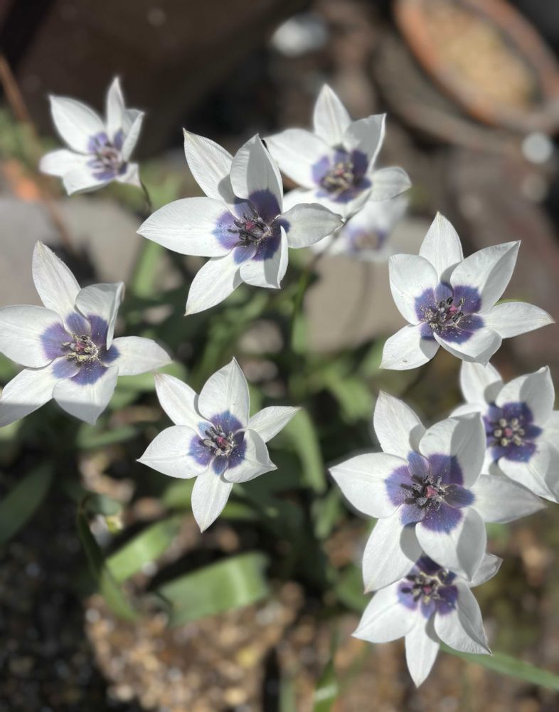 このチューリップ、2箇所に植えてるんだけどほぼ一日中陽の当たる花壇では、2種類の原種🌷どちらも調子悪くって、4時間前後の所の砂利掘り起こして果樹用の土入れた50センチ四方の所では2種類とも元気に全部植えっぱなし咲いてるの😂