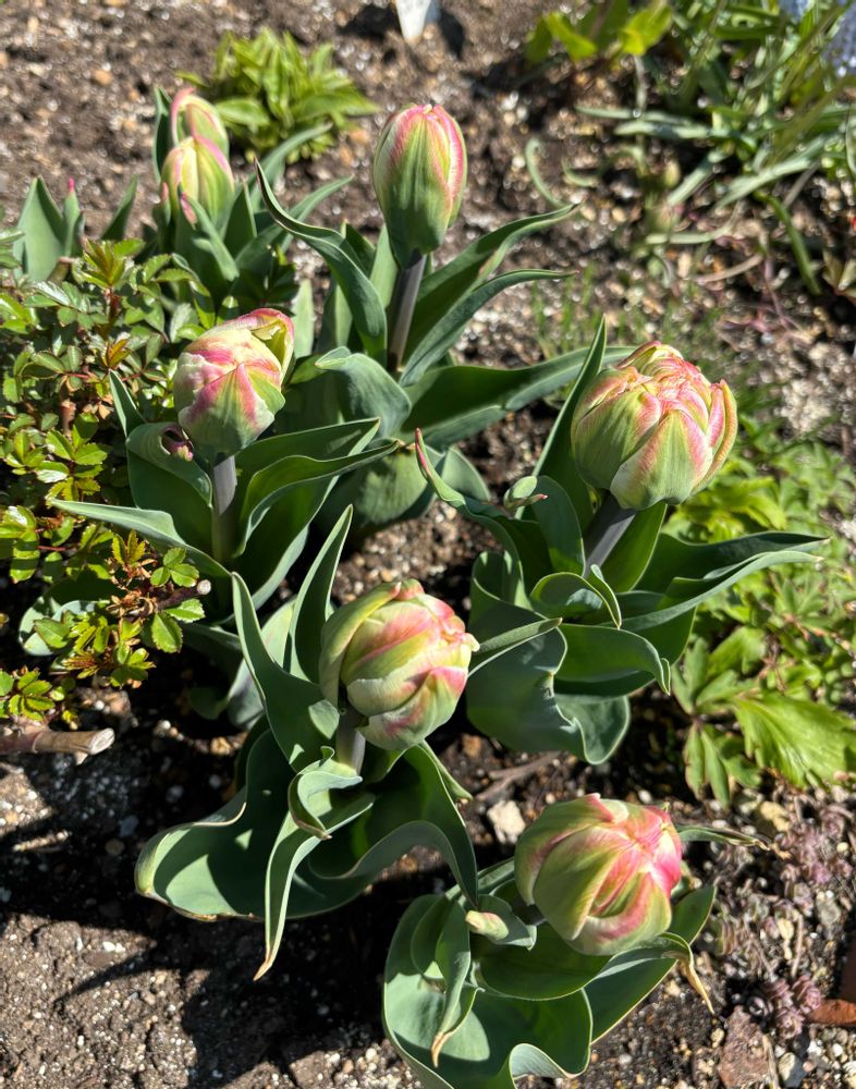普通サイズの🌷は、葉っぱも大きいから枯れるまで周りの宿根草が隠れてしまうんだけどこれはコンパクトでいいんだ〜💕