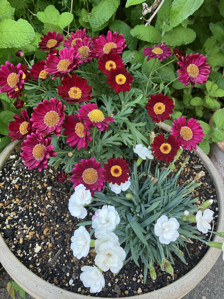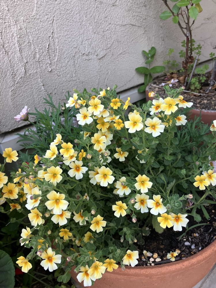 一昨日訪れたカフェの入り口付近に咲いていた鉢植えのお花🪴🌸