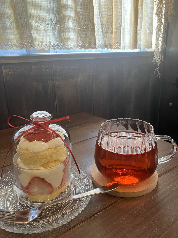 最後の写真は、イチゴのドームショート🍓とルイボスティー🫖思わず笑みがこぼれるような可愛らしさ❣️🥰🍰