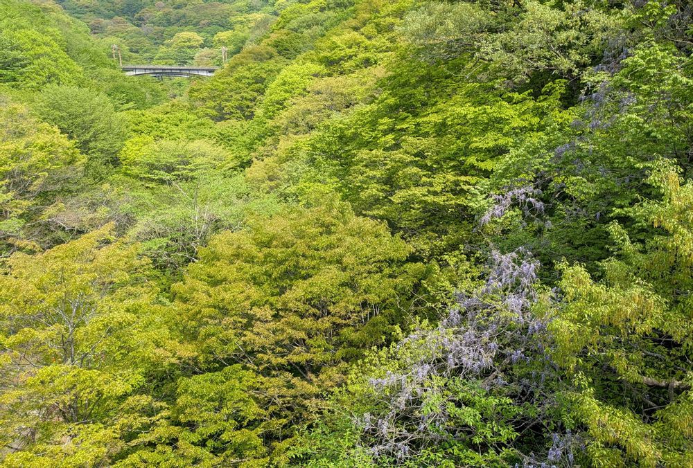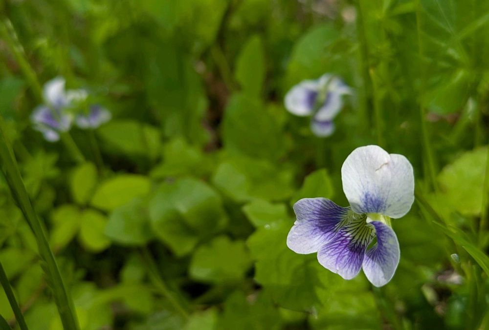 藤の向こうにはかつての信越本線。ニオイスミレ。