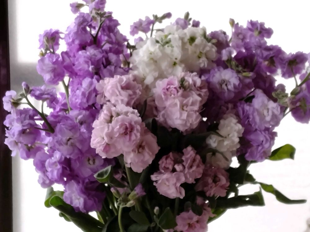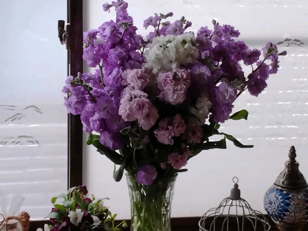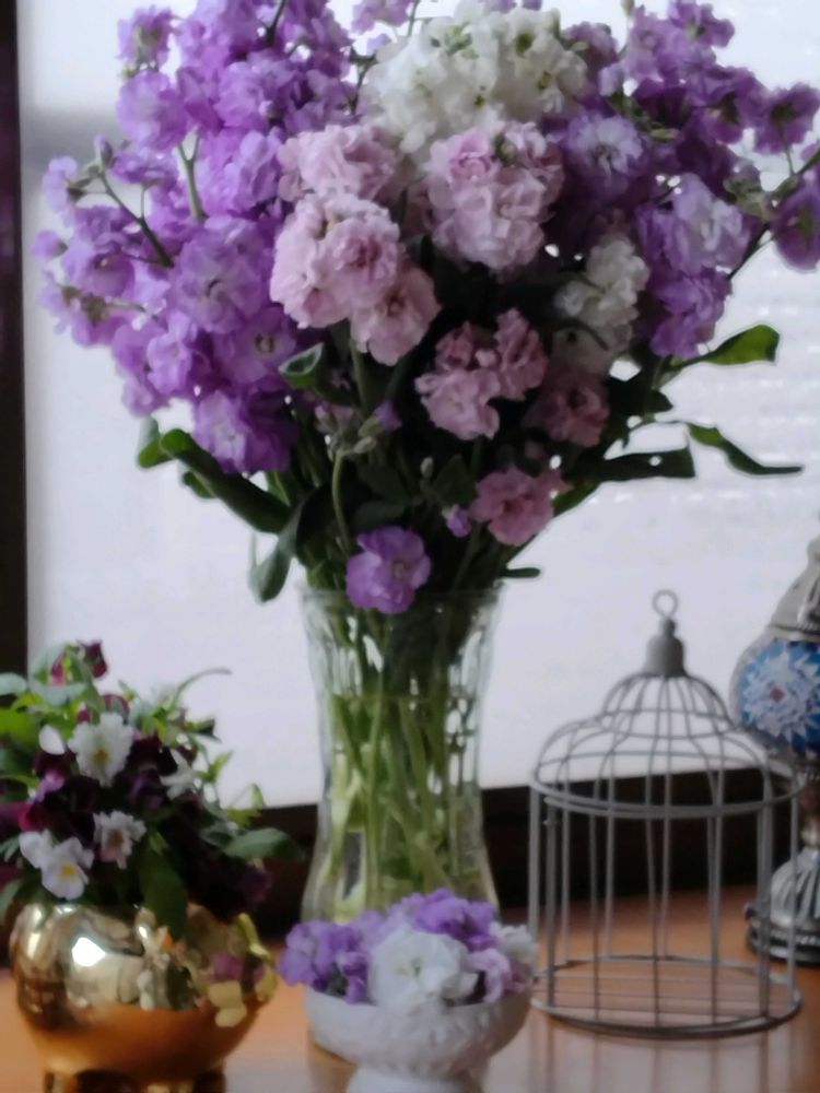 🌿💗💜🤍ストックを頂きさっそく花瓶に入れてみました〜🙋