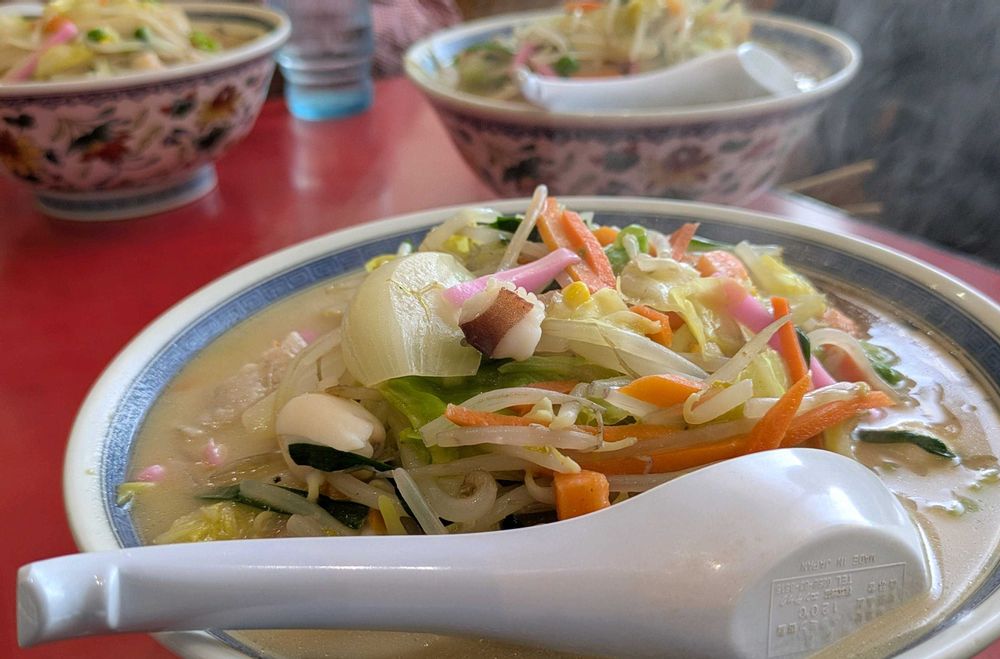 下山飯はチャンポン松風〜パリパリ焼餃子とチャンポン(デカ盛り)