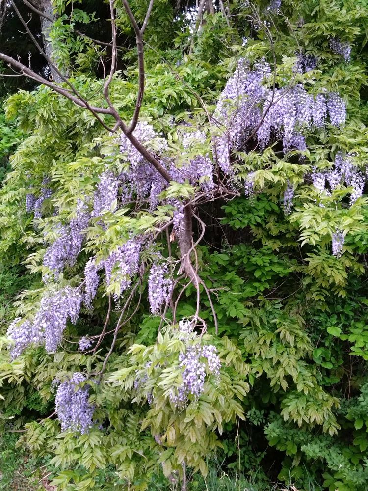 中央道で移動の中、こんなふうに藤の花が木に絡まっていました。