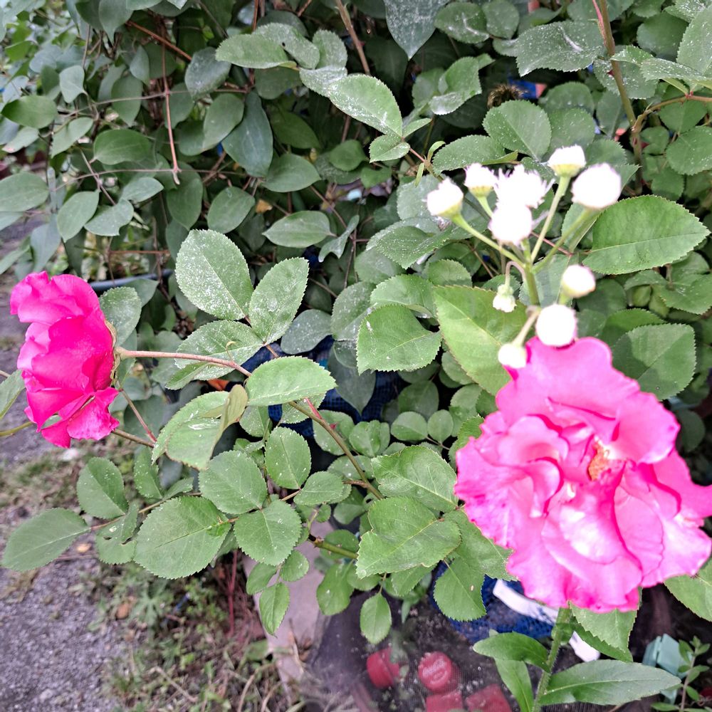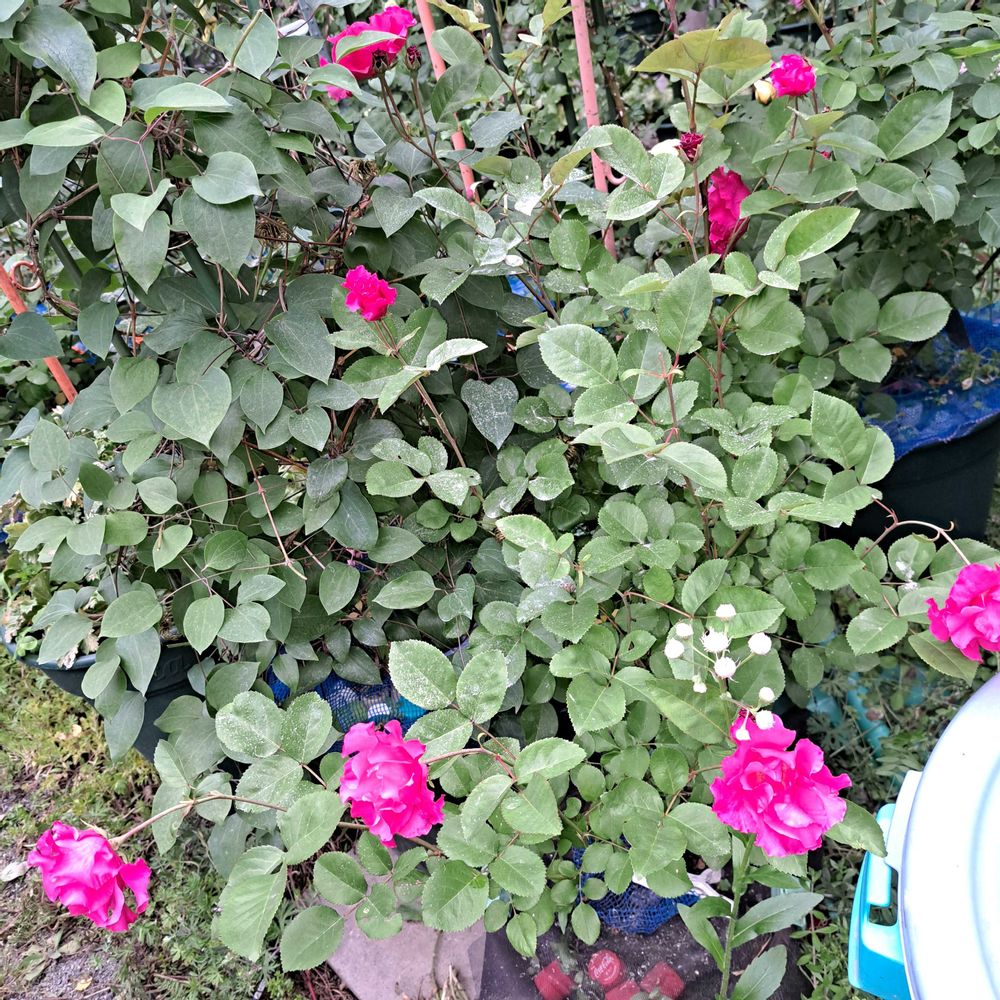 まずこのバラはパーマネントウェーブで旧H.N.「咲楽天」時代の2022.7.01に投稿した見切り品苗のボロボロのものです そして2023年末植え替え時コガネムシにかなり根を食われてて鉢から何匹も幼虫がでてきました⤵️さらに去年末それが原因でしょうかひどい根頭癌腫病で、ネットで調べて瘤のついた細根は切り、太根は半田鏝で熱処理をするとの治療法を加えたところ、あら不思議 以前にもまして花つきがよく癌腫というのを感じさせない力強さみせてます くわえて癌腫菌を食べる放線菌をよぶ蟹殻を土にたっぷりまぜて植え込んだところ、早々と黒星病がでるタイプ2でもあるのに下の葉はいまも緑です いずれ黒星病にはなるとは思いますが自分でもビックリ! なるべく遅くに発病するように放線菌混入資材を軽く振りかけてみました 自由にできる園芸は楽しいですな🎵