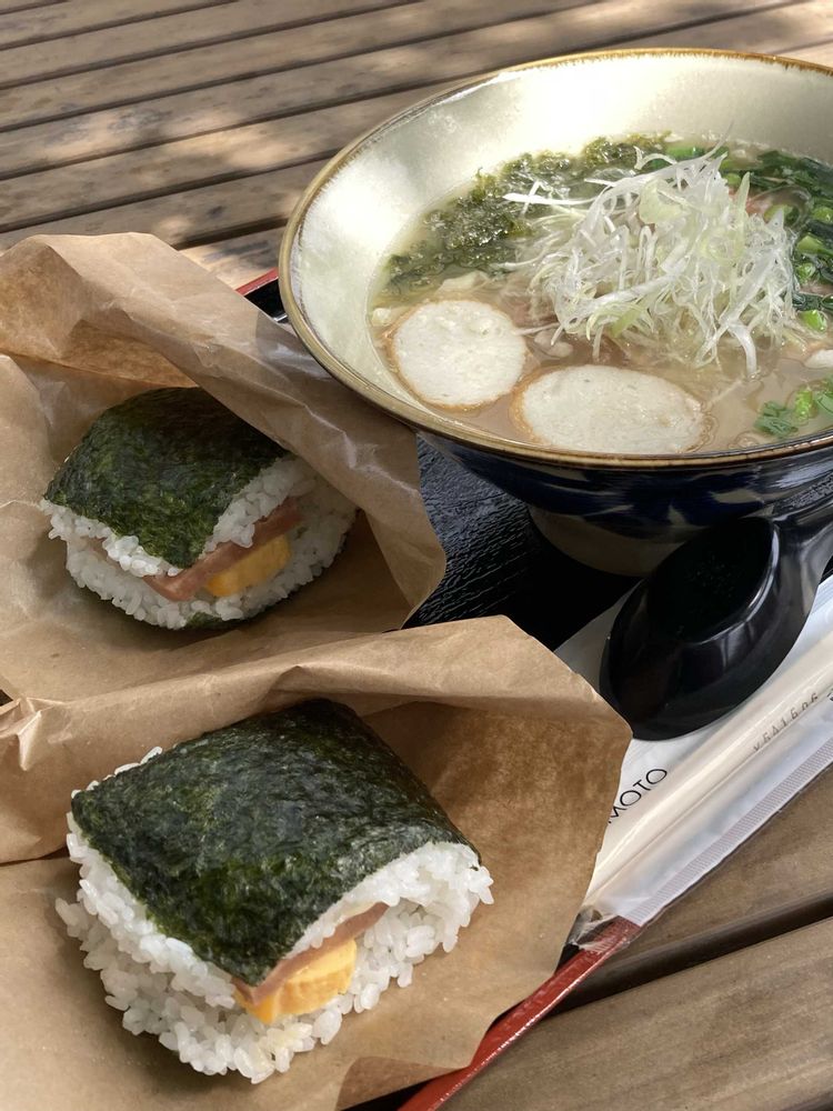 ②ソーキそばとスパムおにぎり🍜🍙