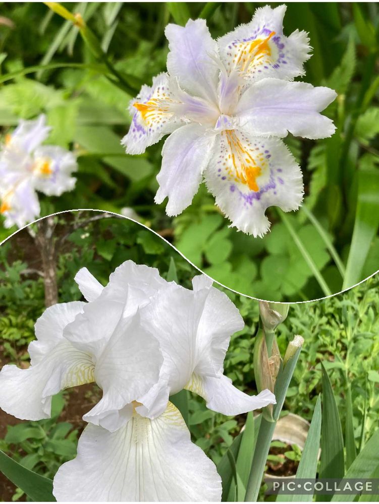 ④シャガさんと、真っ白なジャーマンアイリスさん🤍