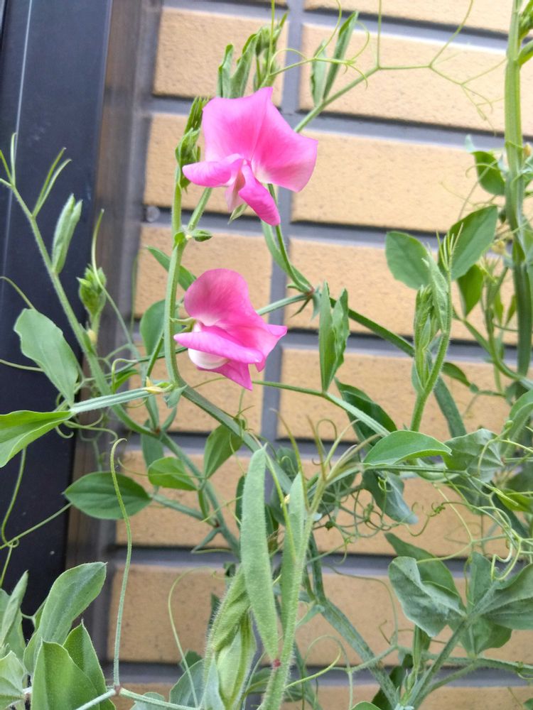 サカタのタネさんのミックスフラワーガーデンの種からスイトピーとアグロステンマが咲きました🌸