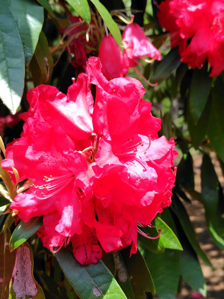 花径4〜5cmの赤やピンク、白の鐘形の花が多数集合した半球状の花を15〜20輪ほど咲かせる。