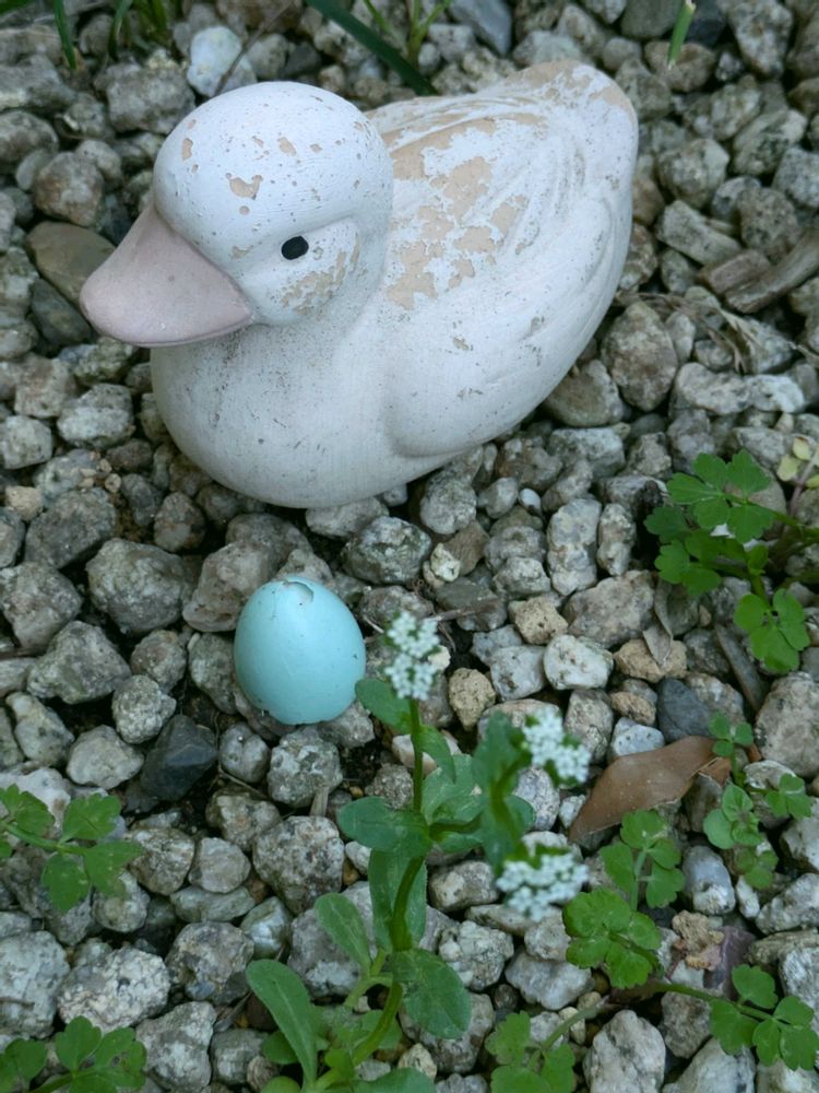 鴨とコラボするように、絵の具で色づけして置いたのかなぁ~と思った
