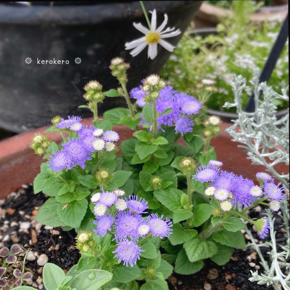 けろけろさんのアゲラタム,紫陽花の蕾,斑入りアジサイの投稿画像