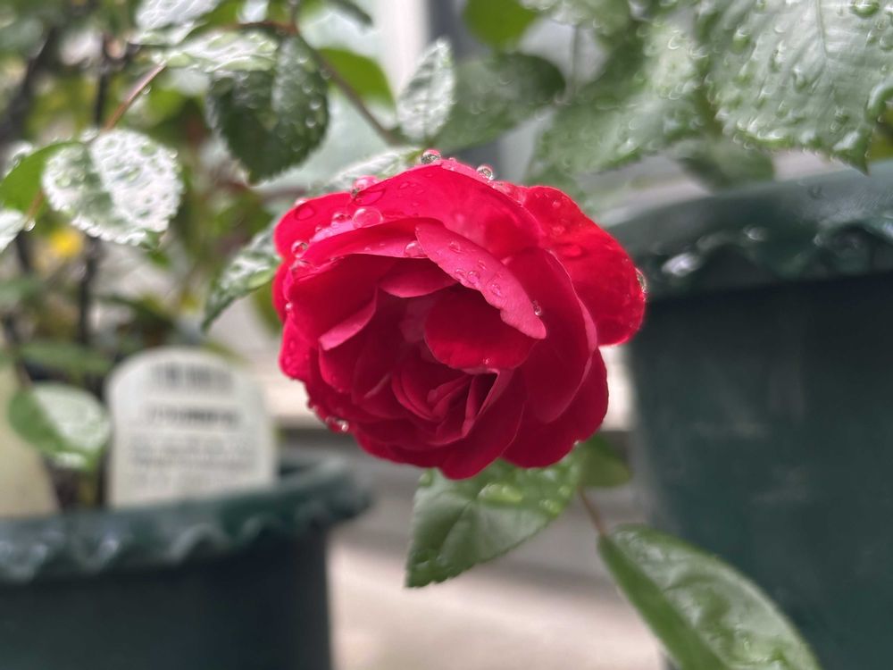 細い枝に丸くて可愛い赤い花をぽんぽんと咲かせます🌹🥰