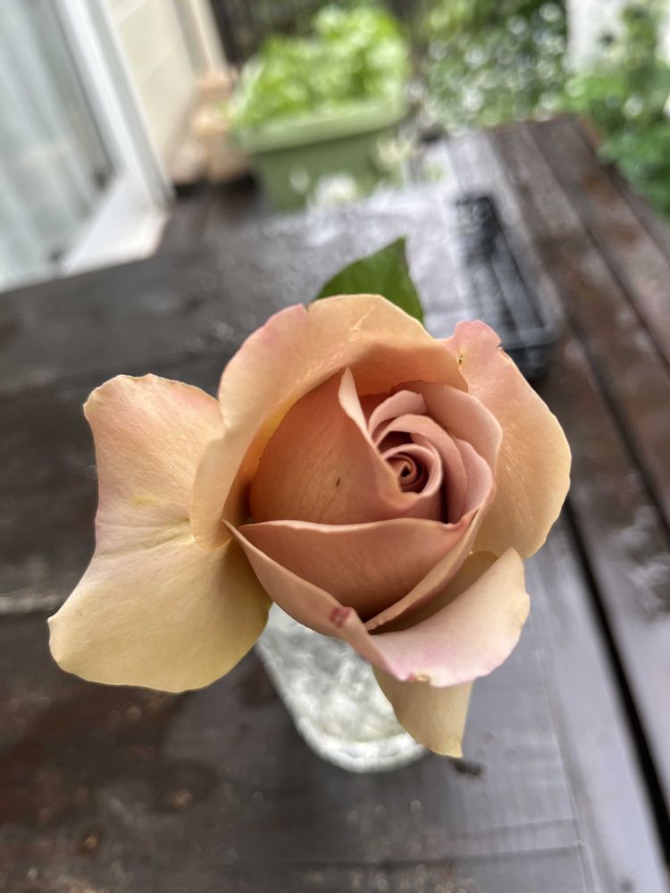 もう蕾から、カフェラテ色なんです。あんまり葉っぱもシュートも出てこないので、ちょっと気難し屋さんかもしれません。🥹たくさん咲いてくれるよう、気長に育ててみます❣️