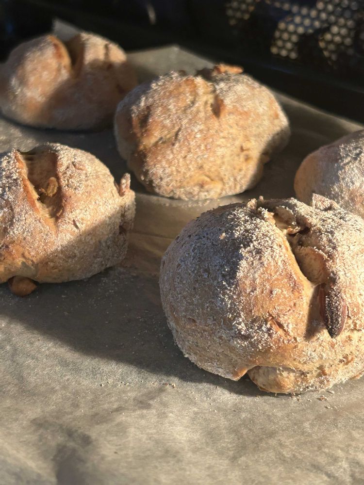 小腹が空いたので夕方ライ麦パン焼いてみました👌🏻最近ナッツ類食べてるので混ぜてみたらいい感じです。