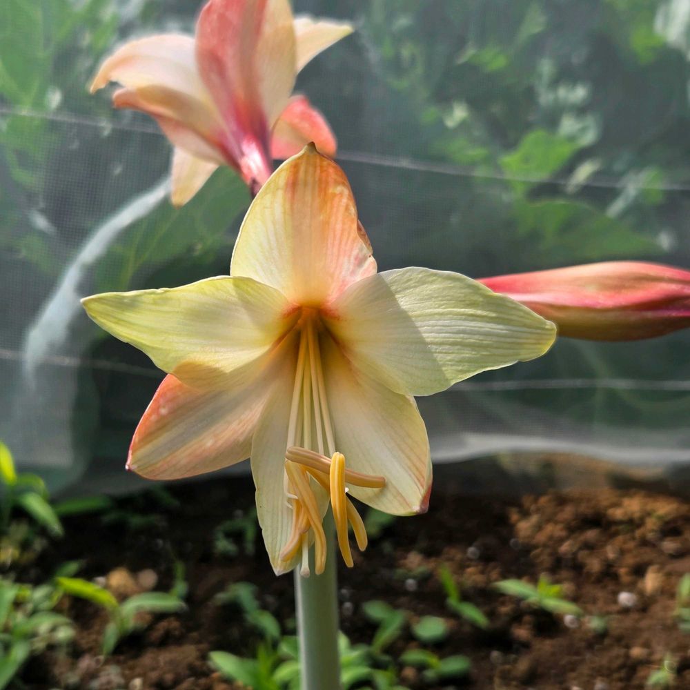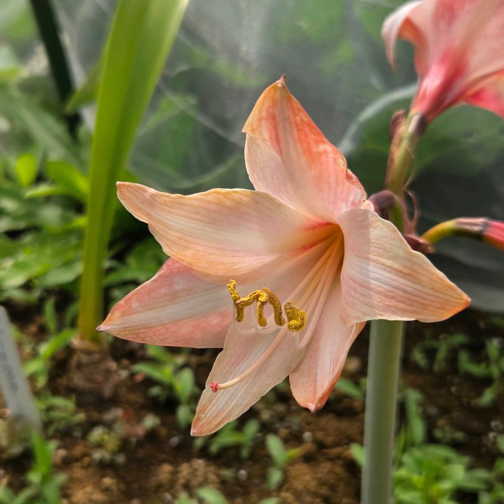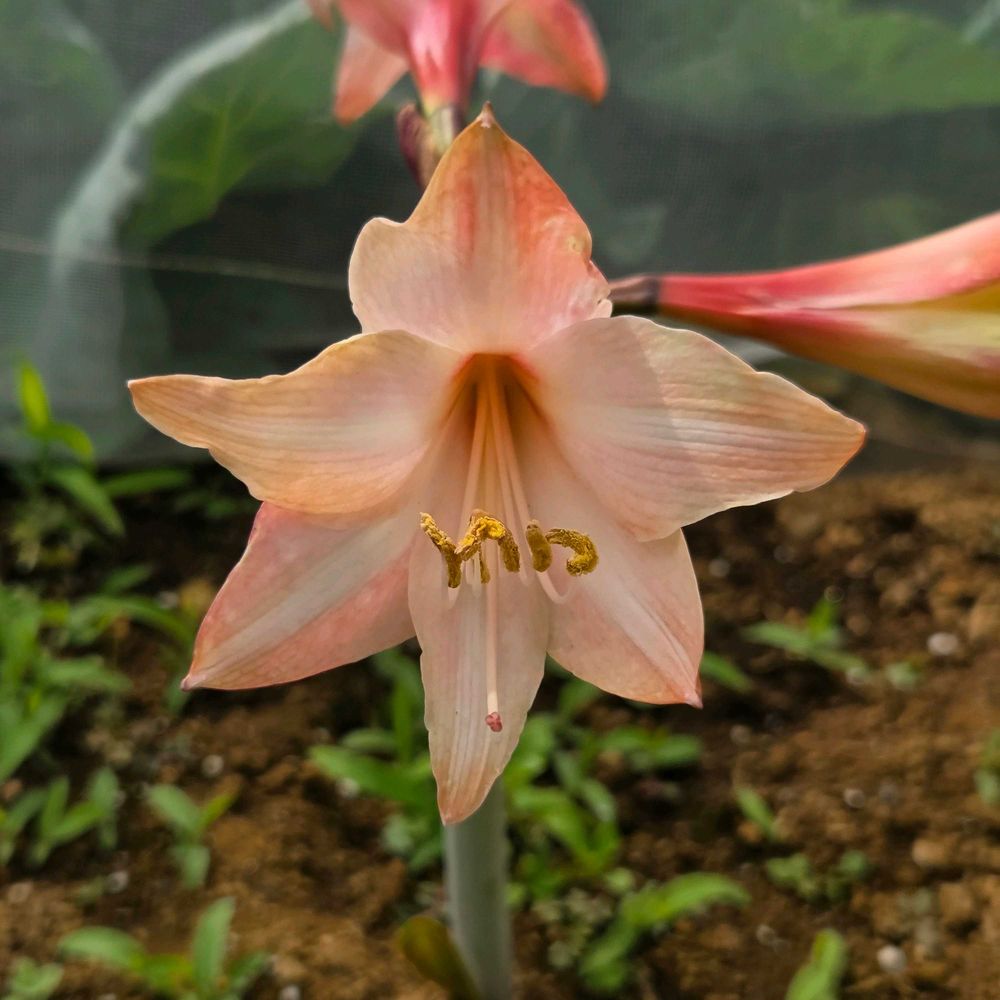 小森谷ナーセリーさん作出のアマリリスが開花しました!咲き始めは3.4枚目のように黄色がかっていたのであれ?と思いましたが、咲き進むとイメージ画像通りの桃花になりました!