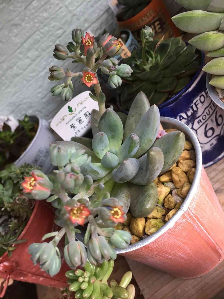 紫麗殿の花は他の多肉の花よりも紅くなって