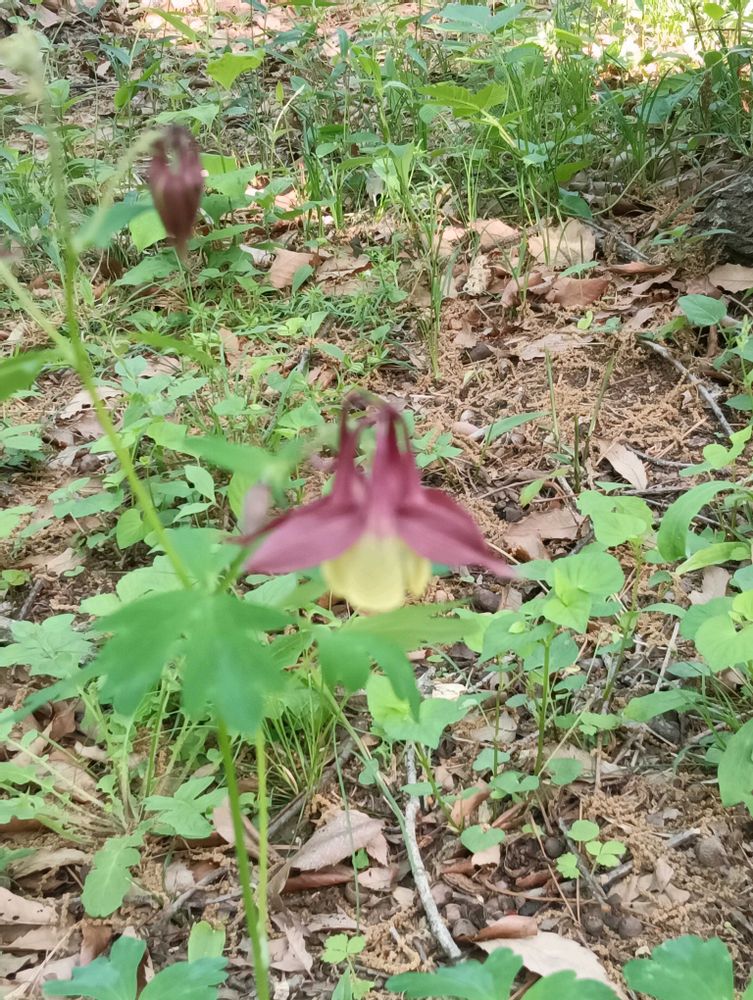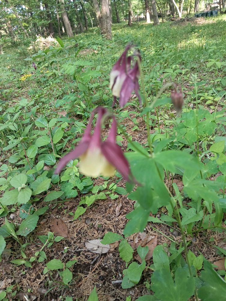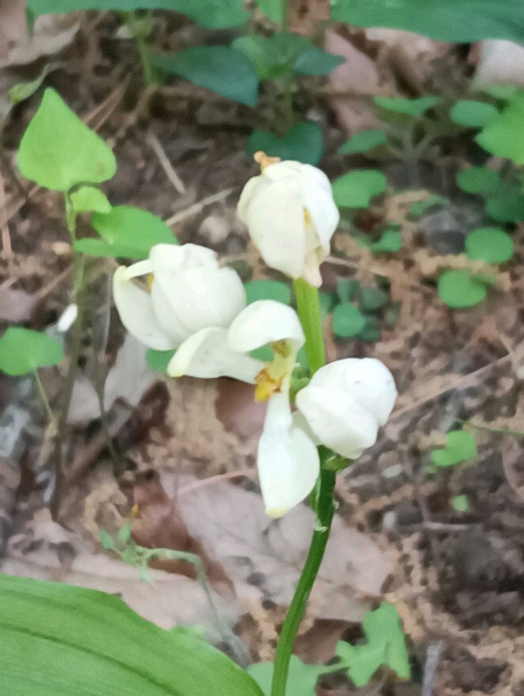 雑木林の散歩中に見掛けた銀ギンラン、紫オダマキですね〜