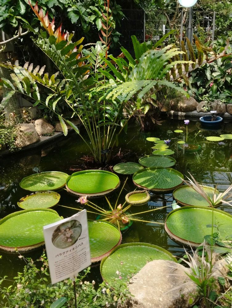 ❹パラグアイオニバスという植物は強い浮力を持ってるので子供が葉の上に乗れるみたいです。