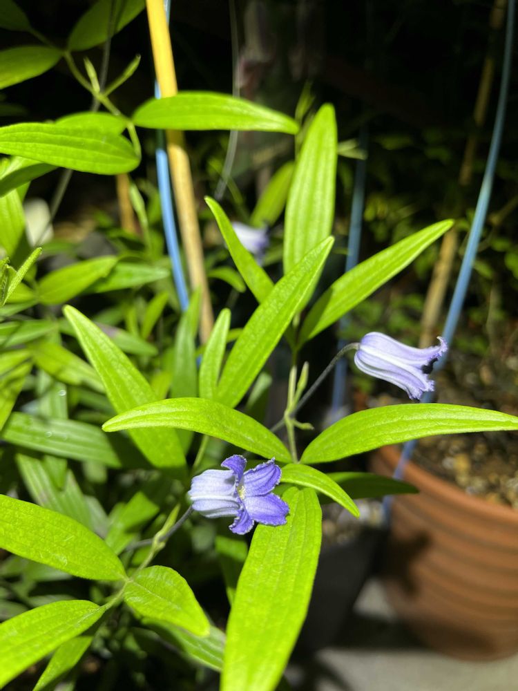 葉の形も一般的なものとは異なる笹葉。背丈が低く可愛らしいクレマチス💕