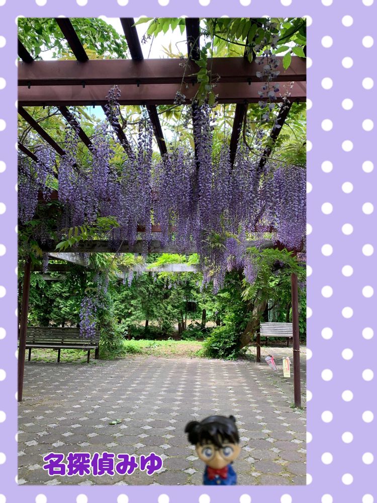 今年は藤を十分見れなかったので、コナン君バッチリ似合う姿が嬉しいぴょんです🐰😊🥂💐🥇